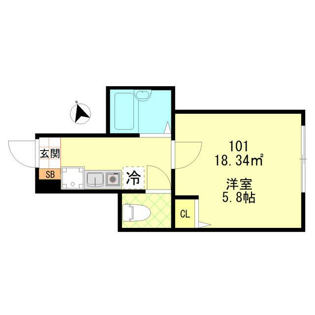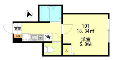 面積 | 18.34㎡ | 間取り | 1K |