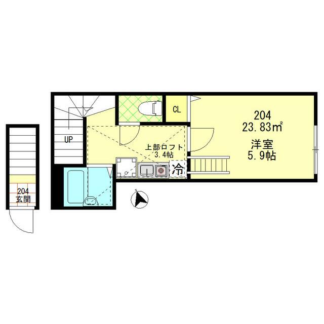 | 専有面積 | 23.83㎡ | 階建/階 | 2階建/2階 |