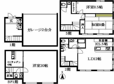 | 間取り | 3LDK(和室8畳/洋室8.5畳/洋室20畳/LDK17.5畳) | 主要採光面 | 南 |